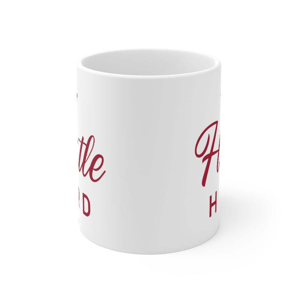 Hustle HardMug. Perfect for coffee, tea and hot chocolate, this classic shape white, durable ceramic mug.White ceramic